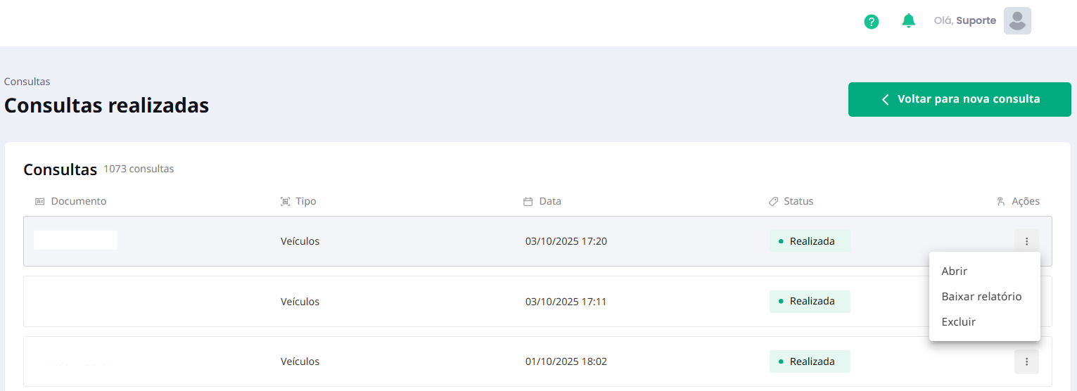 📌 Importante: As consultas ficam armazenadas em sua conta e podem ser acessadas a qualquer momento enquanto sua assinatura estiver ativa. Caso sua assinatura seja cancelada, os dados permanecem salvos e poderão ser acessados novamente assim que o plano for reativado.
