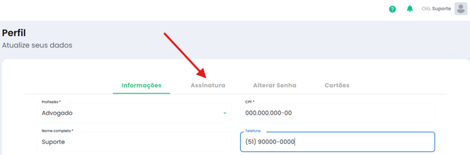 Já na tela de Perfil, clique na aba “Assinatura”: