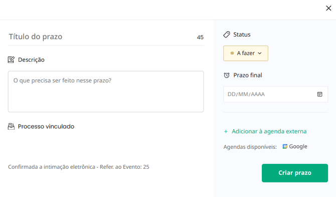 - Você pode optar por vincular esse prazo à sua agenda do Google, facilitando o gerenciamento no seu calendário pessoal.