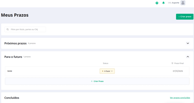A aba Meus Prazos centraliza todos os prazos criados pelo usuário: