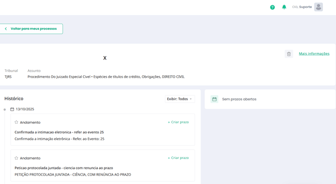 - Meus prazos – concentra todos os prazos ligados (ou não) aos seus processos.