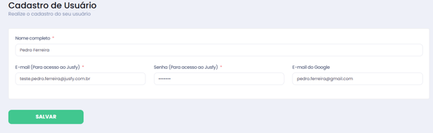 Após conferir se todos os dados de login estão corretos, clique no botão SALVAR. O novo usuário será cadastrado e poderá utilizar as credenciais definidas imediatamente para acessar a plataforma.